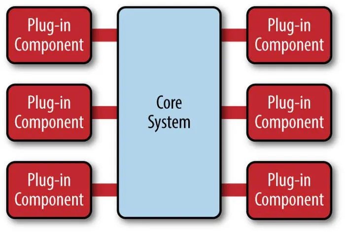 微内核架构中的设计模式包含两大部分:核心系统和插件模块。