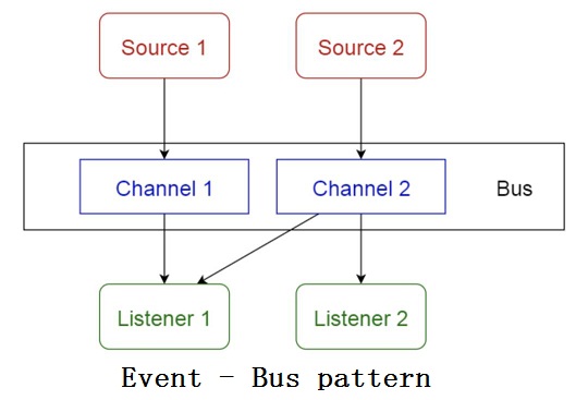 该模式主要处理组件,有4个重要的组件:事件源、事件侦听器、通道和事件总线。事件源将消息发送到事件总线上的特定通道,侦听器会订阅特定的频道。当消息发送到频道中后,订阅该频道的侦听器会收到该消息的通知。