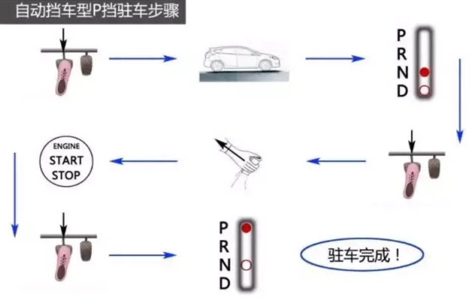 自动挡车型中P挡驻车只需N步(踩下行车制动踏板→停车→挂入N挡→松开制动踏板→ 拉起手刹→熄火→踩下制动踏板→挂入P挡) 就可以完成。至于为什么这么复杂,主要还是因为自动挡变速器结构复杂,车未停稳挂P挡 ,当车辆再次被移动后会造成P挡齿轮与锁止机构卡死或者对变速器有刚性冲击。