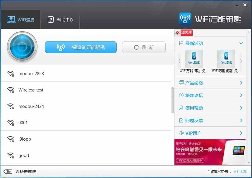 Q)为什么WiFi万能钥匙PC版在没有联网的情况下要连接手机才能一键查询万能钥匙?