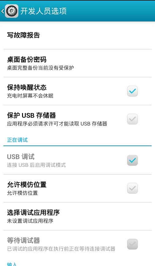 依次打开手机的设置—>开发者选项—>USB调试模式菜单;打开手机的USB调试模式