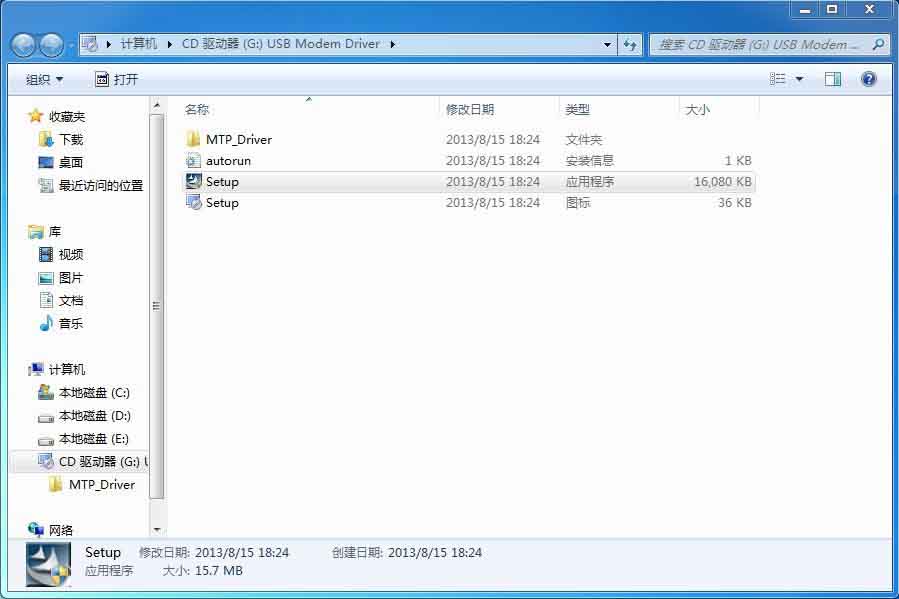 打开我的电脑,打开CD驱动器-—USB Modem Driver”