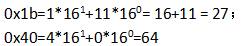 比如,100对应的二进制我们很快就能求出来是:1100100,把这个2进制按照4位为一个单位进行转化,0110 0100-->64所以对应的16进制为:0x64。