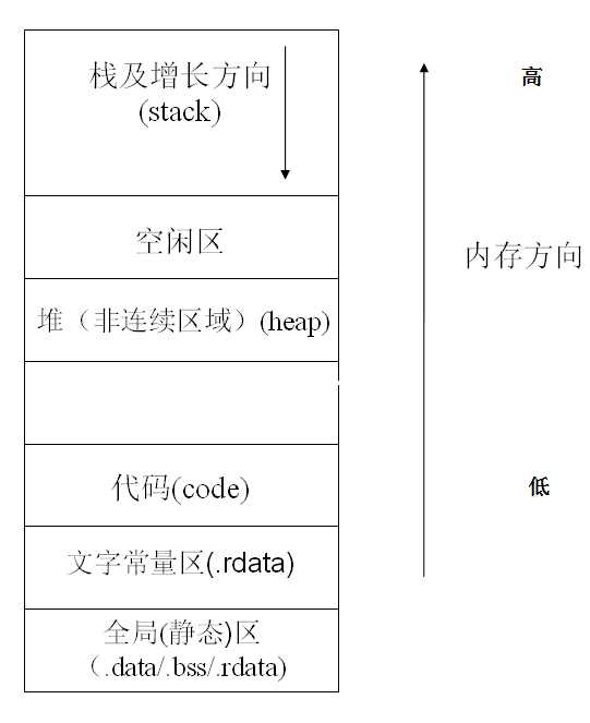 如下所示,程序在内存中分为如下几部分(section):