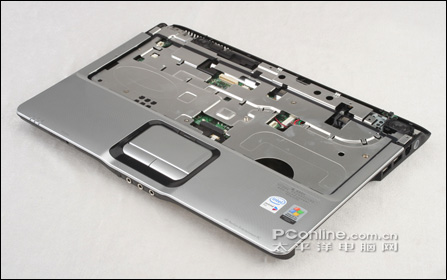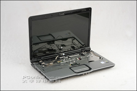 说到做到,我们现在就来拆解一台DV2000系列的笔记本,看看这台本本的内部架构到底够不够优秀吧。从整个拆解的过程来看,DV2000的组装工序要比很多中端笔记本复杂,就外壳部件来说,转轴两侧就各需要一个面板覆盖,而一般的机器是一个面板覆盖。由于设计的关系,CPU和GPU的位置没有底盖,一般用户是不可能亲眼目睹CPU和GPU芯片了。也就是说,一般用户是不可能通过购买另外的移动处理器来升级这台笔记本的,不过内存、硬盘的升级非常方面,这也已经非常符合中国国情了。