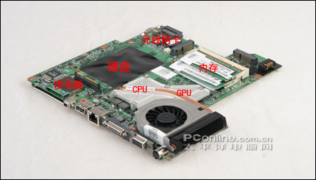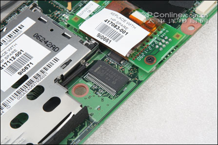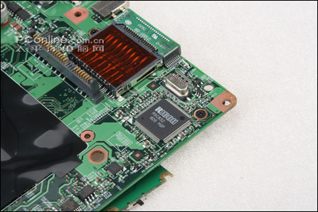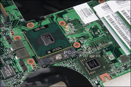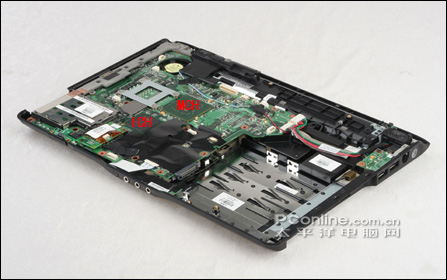 相比复杂的布线,PCB板则是一体化的设计,在一定程度上体现了工程师的功力。值得称赞的是,在面积不大的空间里能够做到双Mini PCI-E插槽,说明它确实不是一般的14寸宽屏笔记本那么简单,这与主芯片分布的合理性有着密切的关系。