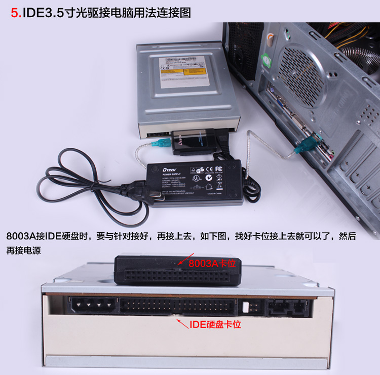 4.支持主流并口和串口设备:2.5英寸硬盘、3.5英寸硬盘、CD-RW、DVD-RW、CD-ROM、DVD-ROM等。
