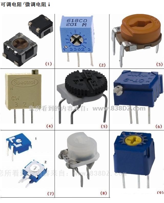 ↓图1线绕变阻器;图2、4基本旋转电位器;图5多圈电位器