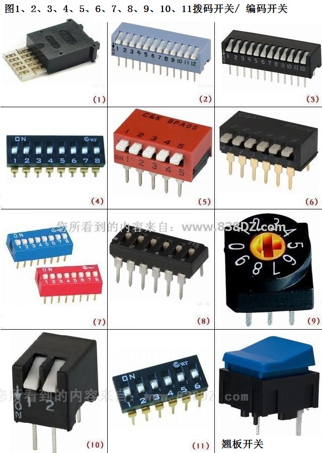↓图1、2、3、4、5、6、7、8、9、10、11拨码开关/ 编码开关;图12 翘板开关