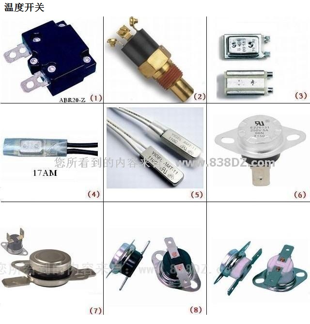 温度开关是一种用双金属片作为感温元件的温度开关,电器正常工作时,双金属片处于自由状态,触点处于闭合/断开状态,当温度升高至动作温度值时,双金属元件受热产生内应力而迅速动作,打开/闭合触点,切断/接通电路,从而起到热保护作用。当温度降到重定温度时触点自动闭合/断开,恢复正常工作状态。广泛用于家用电器电机及电器设备,如洗衣机电机、空调风扇电机、变压器、镇流器、电热器具等。