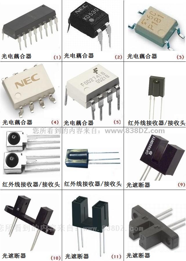 ↓图1、2、3、4、5 光电藕合器;图6、7、8 红外线接收器/接收头;图9、10、11、12 光遮断器