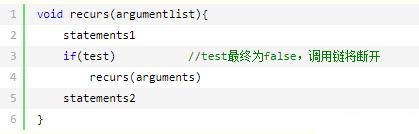 具体地说,如果递归函数调用自己,则被调用的函数也将调用自己,这将无限循环下去,除非代码中包含终止调用链的内容。通常的方法将递归调用放在if语句中。例如,void类型的递归函数recurs()的代码如下: