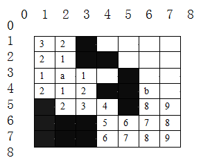 由图可以看出如果两个字母不相同,则数组对角线值为0,如果两个字母相同,则值为左上角邻居的值加1。得到递推公式: