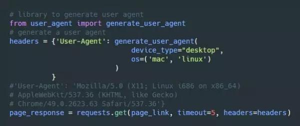 网站并不会阻止正常用户的访问,但如果你用同一个 user agent 发起每秒 200 次的请求,那看起来也太可疑了一点。怎么解决呢?你可以通过 user_agent 库,产生(几乎是)随机的 user agent,也可以自定义一个特殊的 user agent。