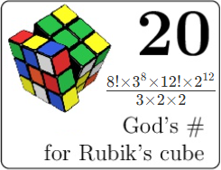 将任意三阶魔方打乱后,最小还原步数究竟是多少?这一问题困扰了数学家长达三十多年,这个最小还原步数也被称为“上帝之数”。美国加利福尼亚州科学家近日利用计算机破解了这一谜团,他们证明任意组合的魔方(三阶魔方有43,252,003,274,489,856,000(约合4.3×10的19次方)种不同的可能组合状态)均可以在20步之内还原。因而,上帝之数=20